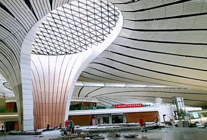 The terminal of Beijing Daxing International Airport has been praised as the new world’s “Seventh Wonder’’ by the old British Newspaper. The roof adopts world famous “Zhaha Curve” design. Due to the peculiar shape, the rare world engineering difficulty, the complex production process, especially the green energy saving natural lighting system of the roof of glass aluminum mesh, it is vividly compared to be the “ smart core’’ . The built-in sunshade aluminum meshes of “smart core” are all manufactured by Ares.