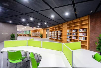 The ceiling of the library adopts the aluminum expanded mesh ceiling system, which not only plays a role of shelter, but also takes into account the characteristics of beauty and ventilation. The frame type of mesh hides the obvious difference between the ceilings, making the overall effect smoother.