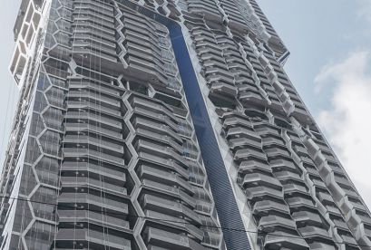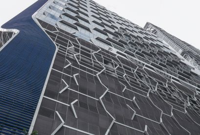 The UIC project in Singapore is located in the central area of Singapore's CBD. Designed by UNStudio, the hexagonal base shape is used to create a pattern that can enhance the performance of the façade, coupled with angles and shading devices, it can adapt to Singapore's climate change.